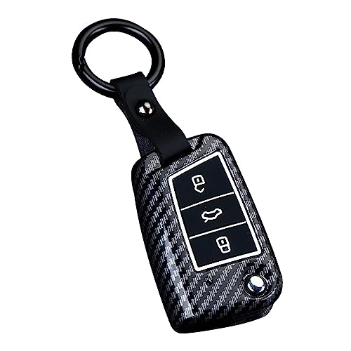 ontto Bilnyckel skal fjärrkontroll skydd för VW Golf 7 MK7 Polo T-ROC Tiguan Skoda Superb Octavia Seat Leon Ibiza ABS nyckelfodral nyckelring nyckel skydd fodral kolfiber svart B