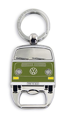 BRISA VW Collection – Volkswagen nyckelring, nyckelringstillbehör, nyckelhållare med ölflasköppnare i T3, T4, T5 bulli buss-design, Grön, Einheitsgröße, T2 buss