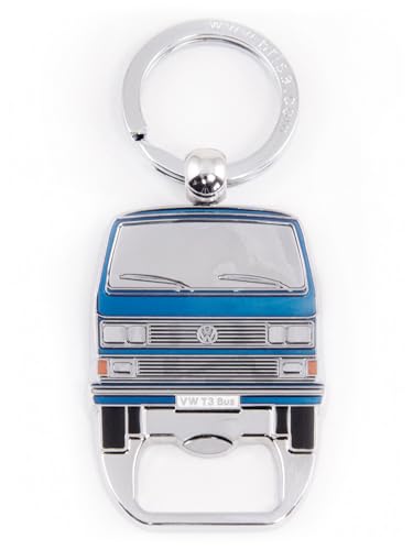 BRISA VW Collection – Volkswagen nyckelhängsmycke, ring, nyckelring, tillbehör, nyckelhållare med ölflasköppnare, i T3 Bulli buss-design (buss fram/blå)