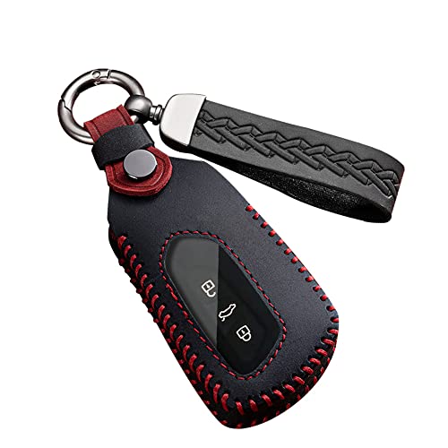 ontto Läderbilnyckelsfodral passar VW ID.3 ID.4 Golf 8 Seat Leon MK 4 Tarraco Ateca Skoda Octavia 2020 tillbehör fjärrkontroll skydd nyckelfodral fodral nyckelfodral nyckelring nyckelskydd svart