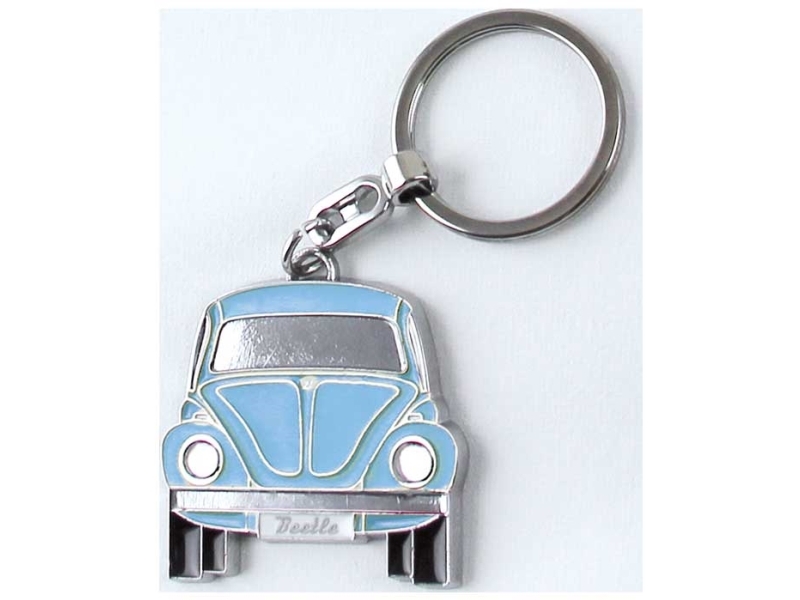 BRISA VW Collection – Volkswagen nyckelhängsmycke, ring, nyckelring, tillbehör, nyckelhållare med öl-flasköppnare, i skalbagg-design (ljusblå)