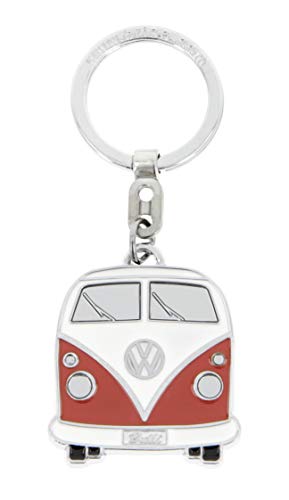 BRISA VW Collection – Volkswagen emalj metall nyckelring nyckelring tillbehör nyckelhållare i T1 bussdesign (fram/röd)