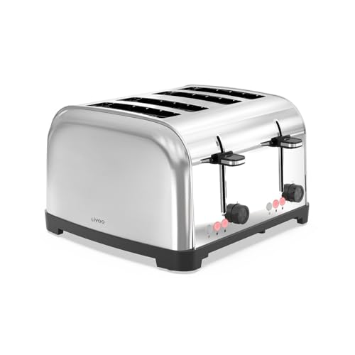 Livoo - Brödrost med 4 fack DOD197-3 cm bred slits, 1500–1 700 W, 3 funktioner, 2 justerbara oberoende termostater (7 nivåer)