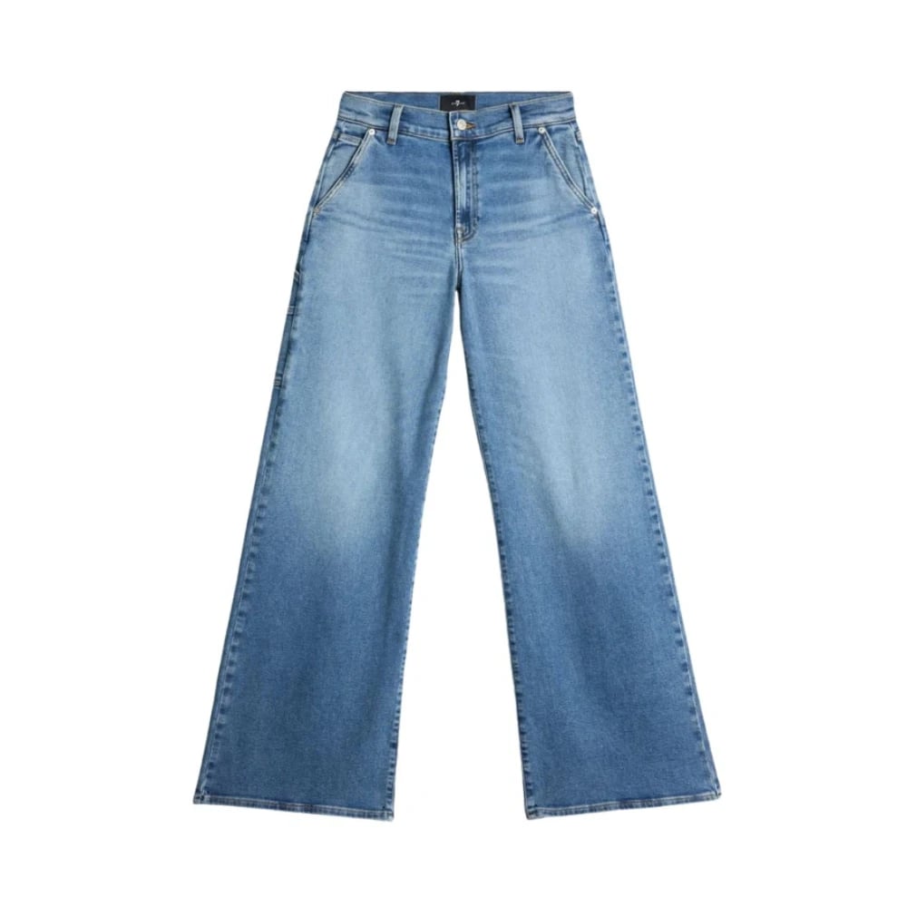 7 For All Mankind Slouchy Wide Explorer Jeans, Mid Blå, 31W Kvinna, Mid Blue, 31W