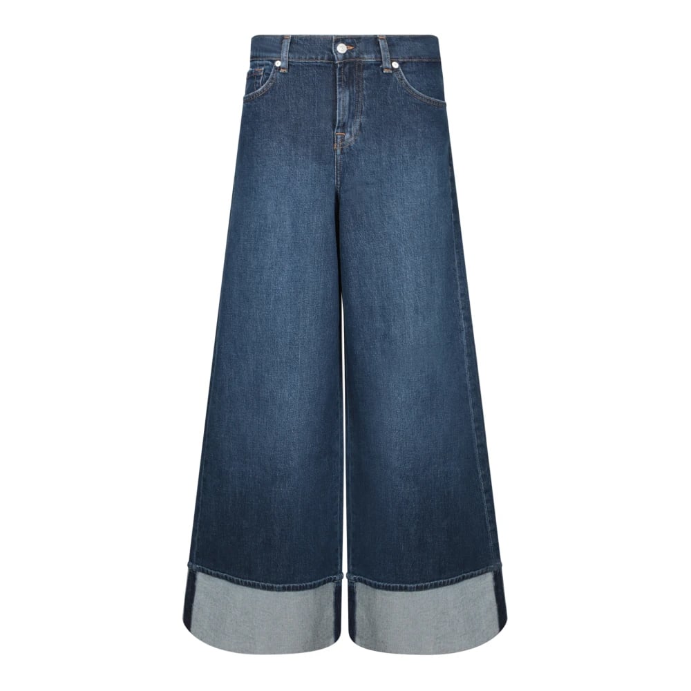 7 For All Mankind, Jeans , Dam, W25, Bomull, Blå Wide-Leg Jeans High-Waisted
