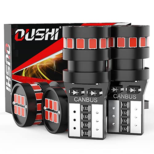 T10 W5W LED-bilglödlampor, OUSHI 194 168 501 2825 12V Bilinredning Kupoldörr Med Tillstånd Skyltbelysning, Ljusröd (4 st)