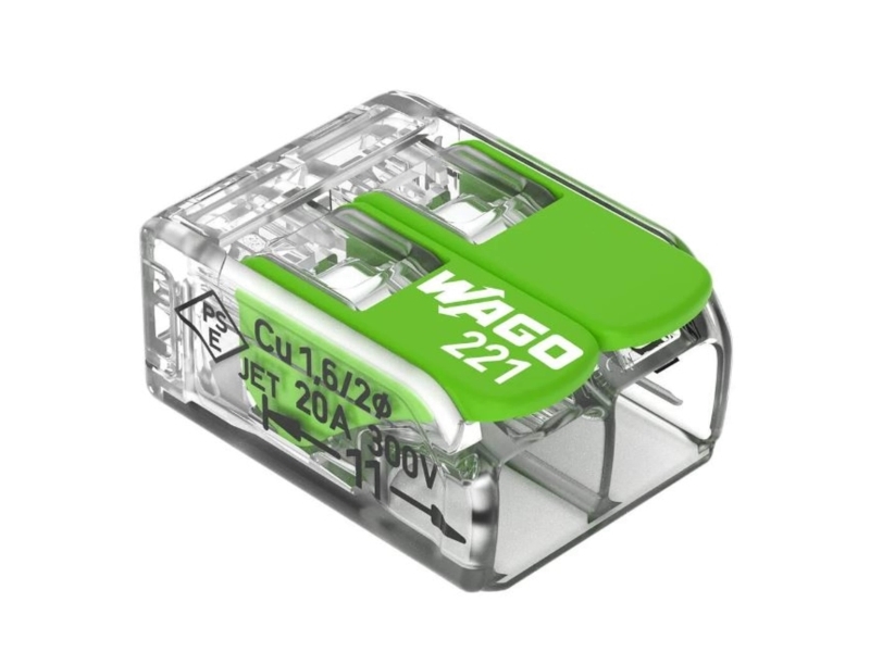 Wago 221 Grön kopplingsklämma (2-polig Wago grön hel frp 100st)