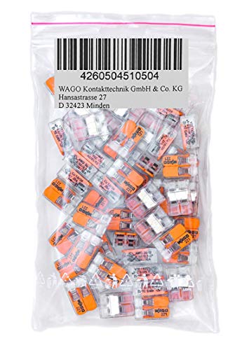 WAGO 50 delar 221-412 anslutningsterminal, 2 kablar med spak, 0,2-4 qmm, liten design, genomskinlig