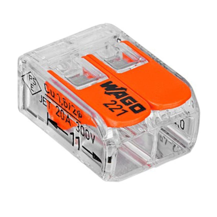 WAGO Anslutningsklämma -COMPACT 221, 2-ledarklämma med manöverspak (25 stycken)