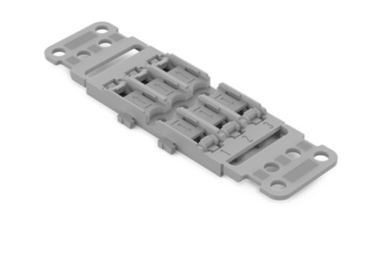 WAGO monteringsadapter 221-2502 | fästadapter med dragavlastning i serien 221, 2-vägs för genomföringskontakter med spak, 5 stycken, för skruvfäste, grå