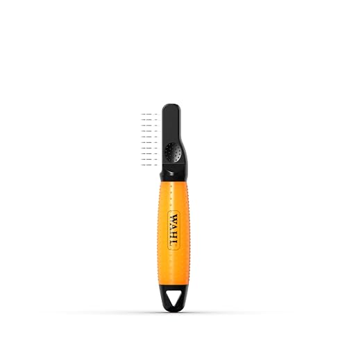 WAHL Dematter – Borste för pälsvård, kam för hundar och katter, borttagning av tovor på kort-/långhåriga djur, tänder i rostfritt stål, gelhandtag, orange