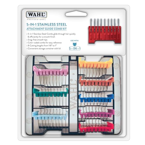 WAHL 5-in-1 Attachement Comb Set, 3-25mm, #1-8, 5-In-1 Blades, rostfritt stål, Professionella skydd för hårklippare, Färgat set