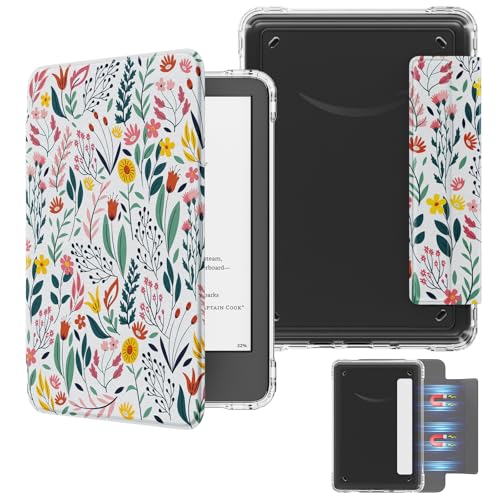 MoKo Detachable Magnetic Case for All-New E-reader(11th Generation-2024/2022 Release),Ultra Clear Back Scratch-Proof Light & Shell Cover with Auto Wake/Sleep,Not fit BOOX & Kobo, Flowers