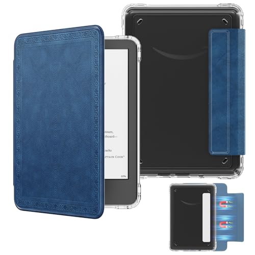 MoKo Detachable Magnetic Case for All-New E-reader(11th Generation-2024/2022 Release),Ultra Clear Back Scratch-Proof Light & Shell Cover with Auto Wake/Sleep,Not fit BOOX & Kobo, Blue Vintage Twill