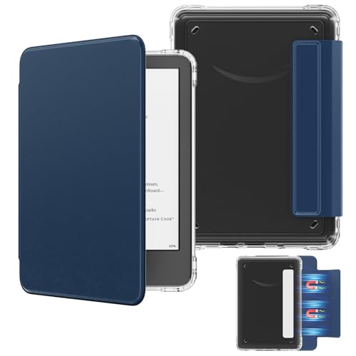 MoKo Detachable Magnetic Case for All-New E-reader(11th Generation-2024/2022 Release),Ultra Clear Back Scratch-Proof Light & Shell Cover with Auto Wake/Sleep, Not fit BOOX & Kobo, Dark Sea Blue