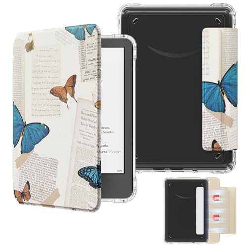 MoKo Detachable Magnetic Case for All-New E-reader(11th Generation-2024/2022 Release),Ultra Clear Back Scratch-Proof Light & Shell Cover with Auto Wake/Sleep,Not fit BOOX & Kobo, Vintage Butterfly