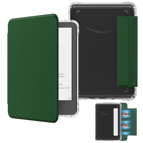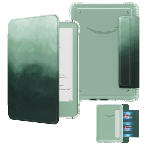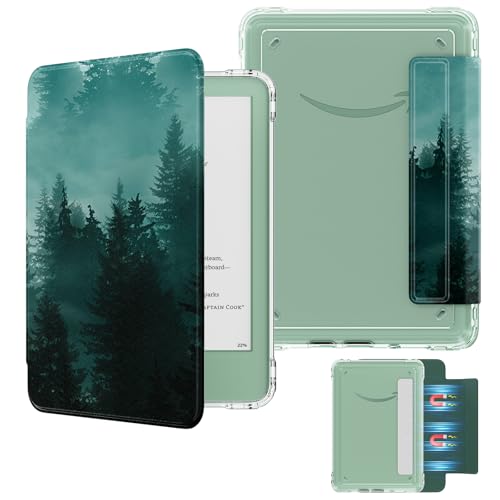 MoKo Detachable Magnetic Case for All-New E-reader(11th Generation-2024/2022 Release),Ultra Clear Back Scratch-Proof Light & Shell Cover with Auto Wake/Sleep, Not fit BOOX & Kobo, Green Forest