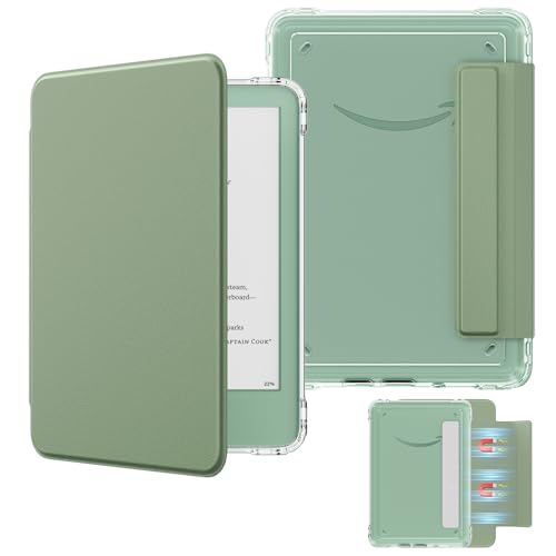 MoKo Detachable Magnetic Case for All-New Kindle (11th Generation-2024/2022 Release) 6 Inch,Ultra Clear Back Scratch-Proof Light & Shell Cover with Auto Wake/Sleep, Agave Green