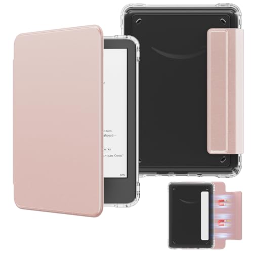 MoKo Detachable Magnetic Case for All-New E-reader(11th Generation-2024/2022 Release),Ultra Clear Back Scratch-Proof Light & Shell Cover with Auto Wake/Sleep, Not fit BOOX & Kobo, Rose Gold