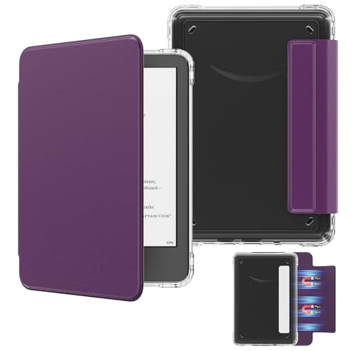 MoKo Detachable Magnetic Case for All-New E-reader(11th Generation-2024/2022 Release),Ultra Clear Back Scratch-Proof Light & Shell Cover with Auto Wake/Sleep, Not fit BOOX & Kobo, Lychee Deep Purple