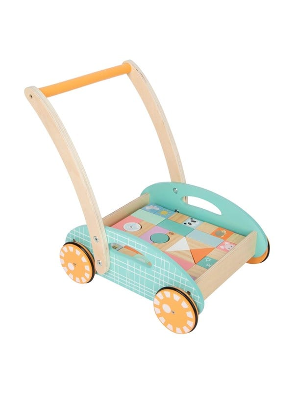 Small Foot - Wooden Baby Walker Carriage with Blocks Pastel 35dlg.