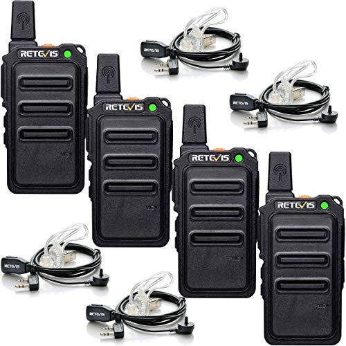 Retevis RT619 Walkie Talkie med Headset PMR Walkie Talkies set 16 Kanaler VOX Squelch 1300mAh Uppladdningsbart Micro USB-Licensfritt Radioset (2 Par, Svart)