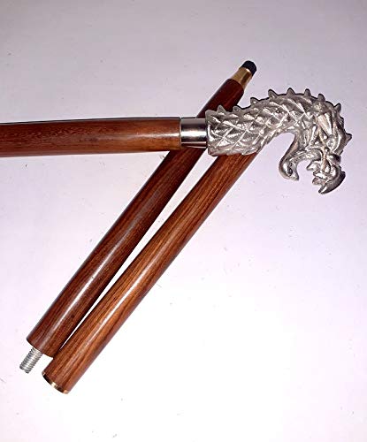 Walking Stick Deluxe Walking Cane Vacker Silver Dragon Lord Head Raven Handtag Gångpinne för Män och Kvinnor Gåva.