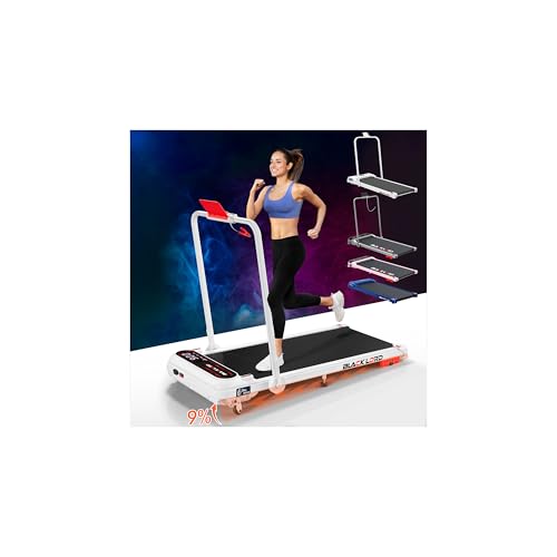 BLACK LORD Walking Pad, Slim Office Löpband, 1–15 km/h, 390 mm tejp, stötdämpare, fjärrkontroll och app, LED-skärm (med handtag, vit)