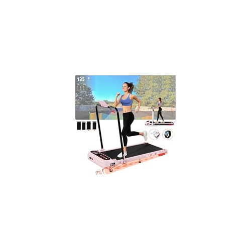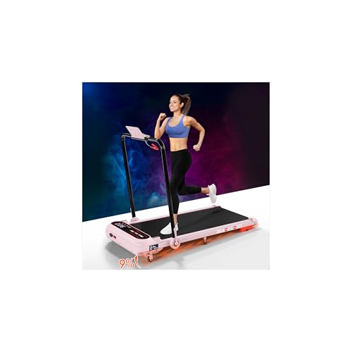 BLACK LORD Walking Pad, Slim Office Löpband, 1–15 km/h, 390 mm tejp, stötdämpare, fjärrkontroll och app, LED-skärm (med handtag, rosa)
