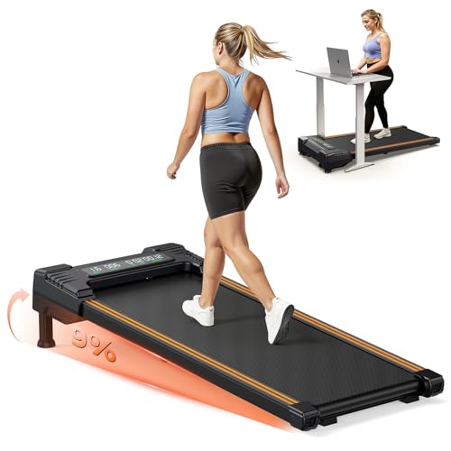 ACTFLAME Walking Pad Löpband Med Lutning, Underbord & Bärbart Löpband För Hemmakontor, 4-I-1 Kompakt 2,5 HK Fitnesslöpband (Svart) (svart)