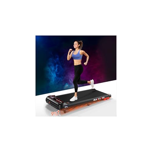 BLACK LORD Walking Pad, Slim Office Löpband, 1–11 km/h, 390 mm tejp, stötdämpare, fjärrkontroll och app, LED-display (utan handtag, svart)
