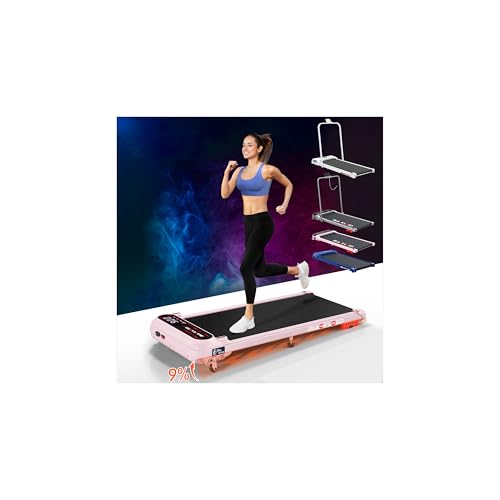 BJTDLLX Walking Pad Löpband, hopfällbart, för hemmet, med LED-display och fjärrkontroll, högkvalitativt, elektriskt, 1 hk, 1–6 km/h, för promenad och jogging, för hemmakontor, monteringsfri (rosa)