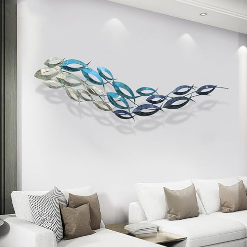 UIHECTA Outdoor Metal Beach Wall Art, Metal Fish Wall Decor, Nautical 3D Metal Hanging Decor, Water Sea Life Sculpture Decor, Wall Decor Shoal of Fish Abstract Wall Art
