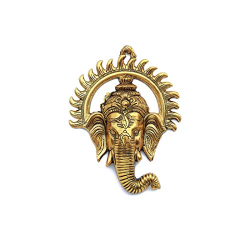 Aditri Creation Ganesha Wall Hanging Metal Ganesh Face with Sun Statue Sculpture Idol Indian Wall DECOR Antique Ganpati Statue for Home, Entrance, Temple DECOR andgifting (Size:- 9" X 7")