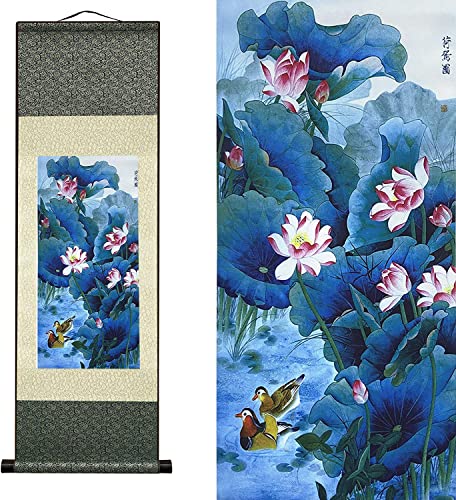 Silk Scroll Painting, Chinese Art Scroll, Landscape Scrolls, Chinese Wall Art Scroll Painting Japanese Scroll, Asian Wall Decor Four Seasons Vår Sommar Höst Vinter Landskapsmålning (Color : A1)