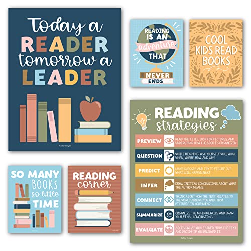 Hadley Designs Motivational Reading Posters For Classroom Elementary –6 Reading Strategies Posters For Classroom, Read Corner School Library Decor, Wall Read Sign, Colorful Bulletin Board Decorations