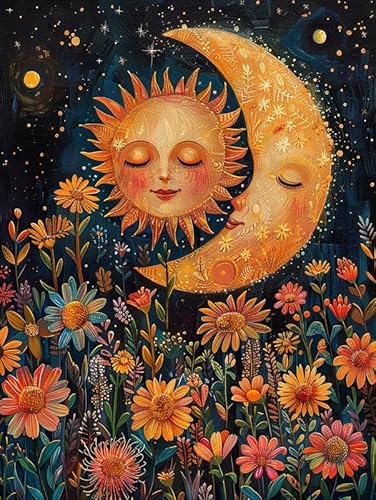 MOMAKA 5D Diamond Painting Kits Sol Månens Ansikte för vuxna, gör-det-själv 5D diamantmålningssatser Blomma Full Drill for Beginners, Rund Borr DIY Crystal Picture Art for Home Wall Decor 30x40 cm