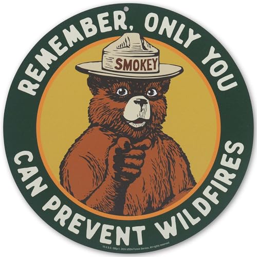 Smokey Bear Remember Only You Can Prevent Wildfires Round Metal Sign - Vintage Smokey Bear Wall Decor for Man Cave, Cabin or Garage