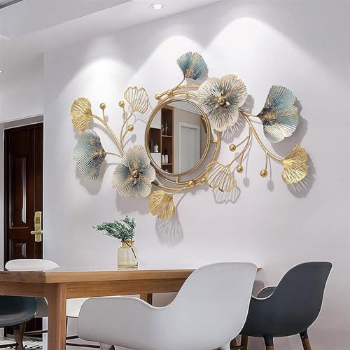 Wall Mirrors Decorative for Living Room Large Decorative Wall Mirror 46inch Ginkgo Leaf Metal Wall Decor Mirror for Bedroom Living Room Bathroom Vanity,A,118 * 68 * 5CM