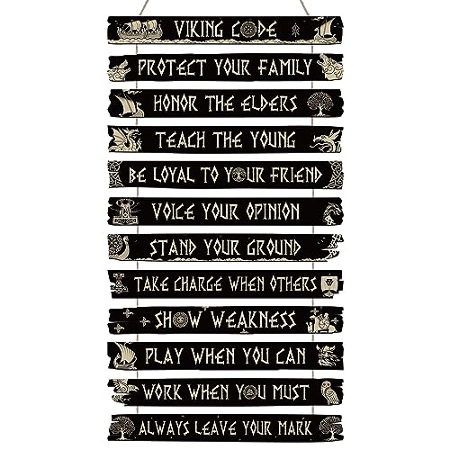 Thinkday Nordic Viking Sign Viking Code Wall Decor Celtic Rune Plaque Scandinavian Vikings Boat Compass Valknut Nordic Medieval Vegvisir Runes for Home Kitchen Mythology Vegvisir Runes Artwork Pagan