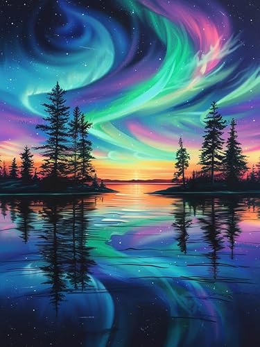 MOMAKA 5D Diamond Painting Kits Norrsken för vuxna, gör-det-själv 5D diamantmålningssatser Träd Full Drill for Beginners, Rund Borr DIY Crystal Picture Art for Home Wall Decor 30x40 cm