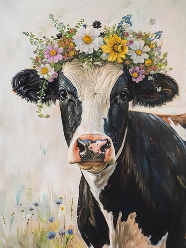 MOMAKA 5D Diamond Painting Kits Mjölkko för vuxna, gör-det-själv 5D diamantmålningssatser Djur Blomma Full Drill for Beginners, Rund Borr DIY Crystal Picture Art for Home Wall Decor 30x40 cm