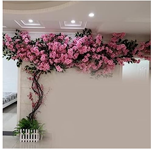 Artificial Cherry Blossom Trees, Background Walls Fake Sakura Flower Vine Simulation Peach Tree for Indoor Wedding Rattan Ceiling Wall Decor,Pink