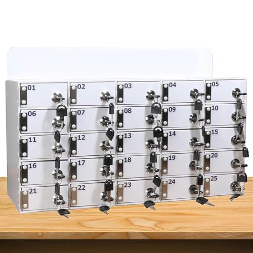 Cell Phone Locker Box, 25/30/40/50 Slots White Acrylic Organizer Box with Lock, Wall-Mounted Mobile Phone Storage Cabinet, Freestanding Cell Phone Locker Box for Classroom, Office, Gym (25slots One Si