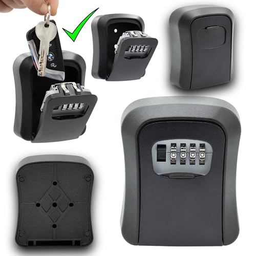 BOXILOCK Key Safe Wall Mounted, Key Storage Box Heavy METAL, Lock Box Outdoor 4 Digit Combination, key box Waterproof and rust resistant, For indoor and outdoor use,Fixing kit included 11,5x9,5x4cm