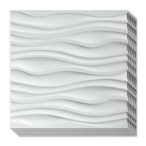 Art3d 12-pack Textures 3D White Square Wall Panels Pvc Wall Panel Cover för interiör Väggdekoration Backsplash Vattentät i Vardagsrummet, Sovrummet, Lobbyn, Kontoret, Köpcentret, 50 x 50cm