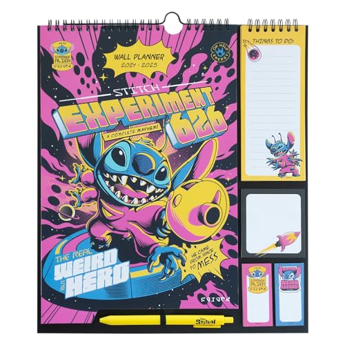 Grupo Erik Disney Stitch Wall Planner 2025 | Monthly Planner 16 Months Sep 2024 - Dec 2025 | 11.8 x 13.4 inches - 30 x 34 cm | With Stickers/Pen/Shopping List | Stitch Gifts | Stitch Disney Gifts