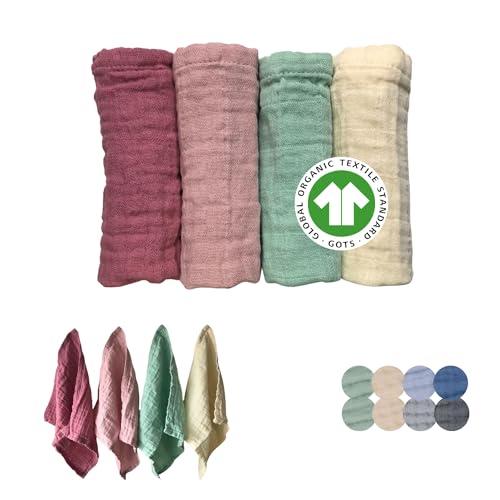 Burp Trasor Baby Tvättlappar Muslin 25x25cm (Supermjuk Muslin Ekologisk Bomull), OEKO-TEX 100 Baby Tvättlappar Nyfödd: Tvättbar I 60 Grader