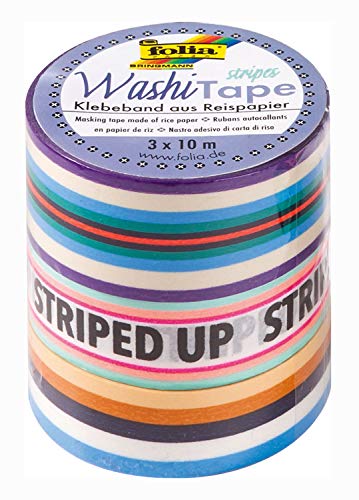 Folia Washi Tape 26445 klassiskt självhäftande tejp av rispapper – 3 delar perfekt för dekoration och dekoration