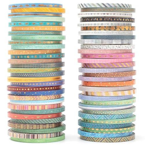 YUBX 60 rullar mager guld Washi Tape Set Washi Glitter självhäftande tejp